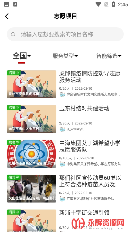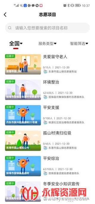 1、项目搜索,搜索最近的志愿服务项目,随时注册成为志愿者。