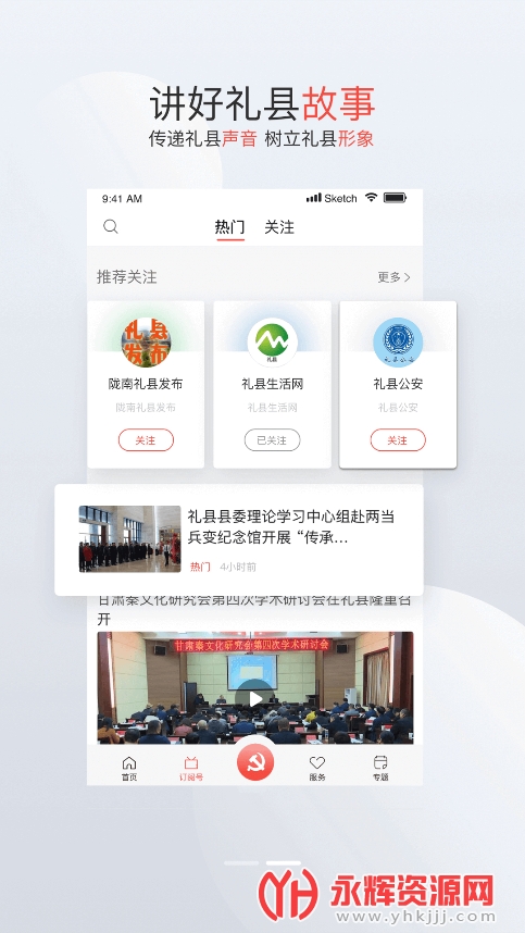 掌上礼县app是一款专门为礼县本地人打造的新闻融媒服务软件,这里提供了非常全面的新闻资讯内容,用户可以关注到本地的大小事件,即时发现最新的热点信息,您还可以通过平台关注到民生服务,功能还是相当的全面的,有需要的用户现在就来下载使用吧!