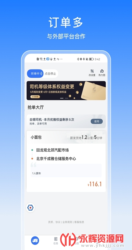 用户可以通过平台快速的进行抢单,让你能够获得更多的货源;
