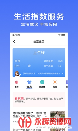 实时获取您当前位置的天气预报和空气质量染指数;