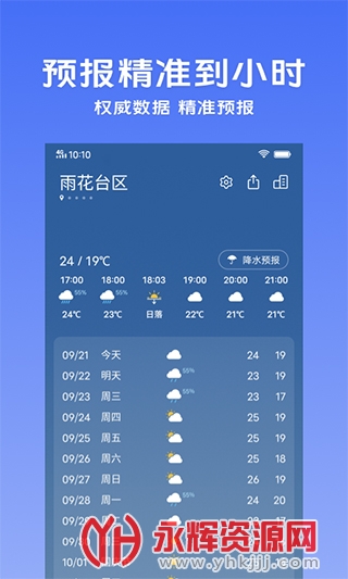 逐时预报轻松查阅24小时内的天气变化,提早预防早晚温差过大。