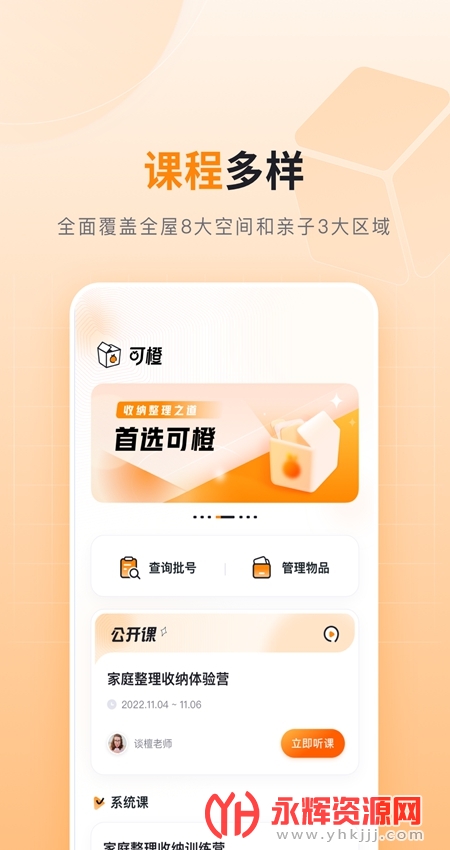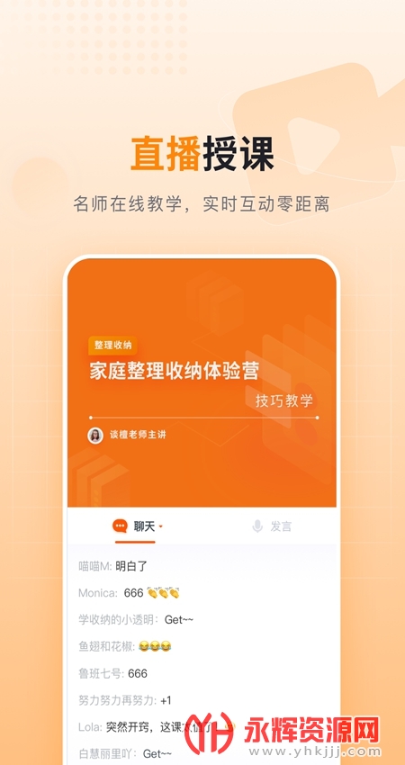 可实时参与互动,亦可及时解决您在学习中遇到的问题,不再受时间和地点的影响,让所有想要通过整理收纳改善家居环境、提升生活品质的朋友,爱好整理收纳的朋友都能够得到公平的学习机会,体验真实上课场景