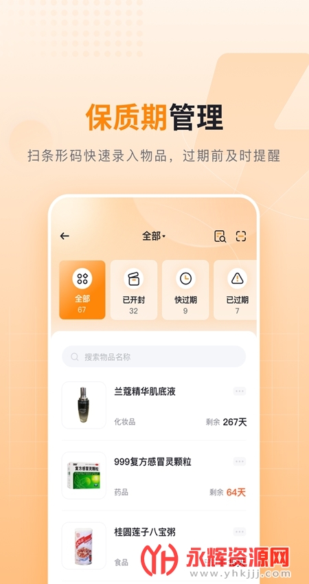 对物品进行管理,避免物品过期,让保质期尽在掌握。支持扫条形码录入和手动录入物品,并设置临期提醒时间,在到期前可橙会给你及时发送临期提醒,不用再担心化妆品、食品等过期给自己造成伤害。保持健康,避免浪费,从管理物品做起