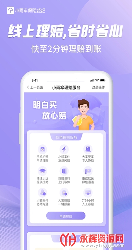 3、【闪赔服务】 7*24小时随时报案,1V1理赔管家全程跟进,快至2分钟即可理赔到账;