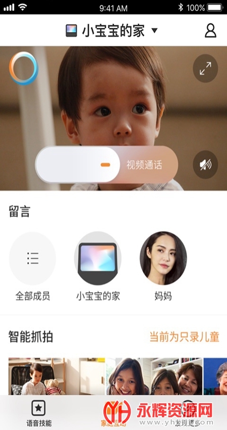 惦记家,一秒回家,视频里同样其乐融融 支持多方视频通话,语音拨打及接听;语音拍照,自动录视频,生成家庭相册