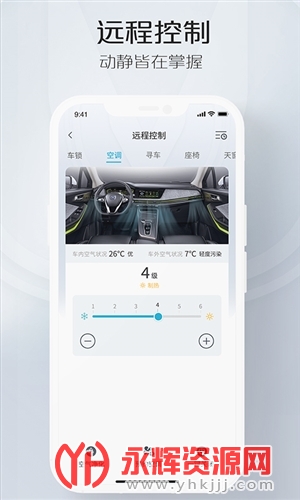 支持手机APP对车辆进行远程控制:如解闭锁、开闭天窗、开关空调、闪灯鸣笛寻车等。