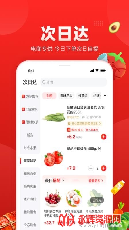 可以按照自己的想法自由添加各种新鲜果蔬,一键就能在线下单