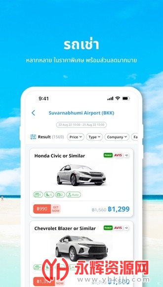 3.预订覆盖整个泰国的租车服务和其他国家通过 EUROPCAR、SIXT、AVIS BUDGET 等世界级服务提供商。轻松预订,便捷支付。支持两种预订形式并在取货点付款或立即通过应用程序付款。