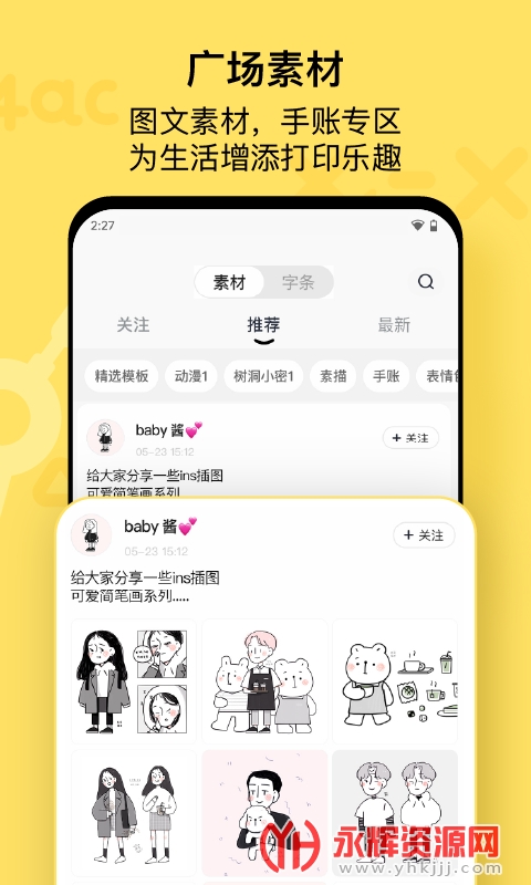 不管你想打印手机中的照片、表情、或者网页、标签都可,您需要做的仅需打开手机连接打印就可,另外这打印机需要相对应的APP才可以运行,傻瓜式的操作,专业的水准,下面就简单介绍一下软件方面。 初次使用需要扫描说明书下载相对应APP应用软件,该机器采用蓝牙技术连接,支持Android操作系统/IOS两大主流系统,初次使用需要注册一个账号绑定登录则可,上手非常简单。界面除了简单的打印功能之外,亮点还有百宝箱、订阅号、素材号,百变趣味玩法。