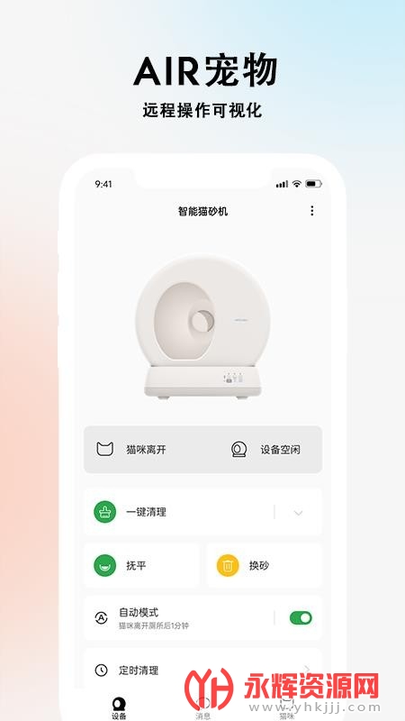 AIR宠物app下载最新版是一款控制智能猫砂机的app,你只需要把软件打开,连接猫砂机就可以进行远程操作,有多种工作模式,根据的猫咪的行为习惯进行控制,是一款养猫人士必备的智能软件,感兴趣的用户可以直接点击下方下载!