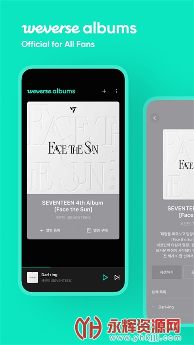 在应用程序中注册购买的Weverse 专辑以下载和欣赏艺术家的音乐!