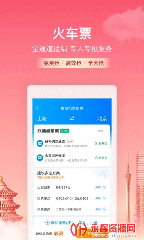 【机票·火车票+酒店】一站式购物车预订,覆盖全产品,灵活选资源,多订多优惠;