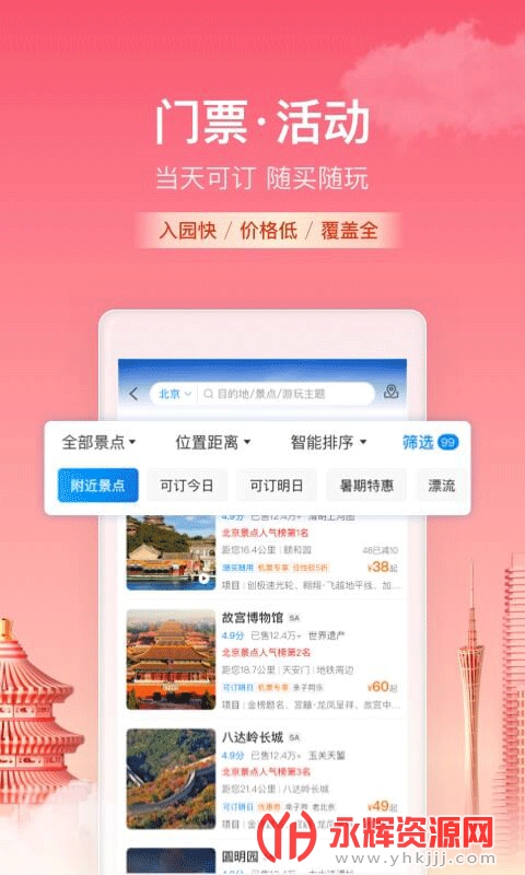 - 全站搜索:集目的地、酒店、景点、旅游、机票、门票、火车票、团购等搜索功能于一体,查找更方便快捷。