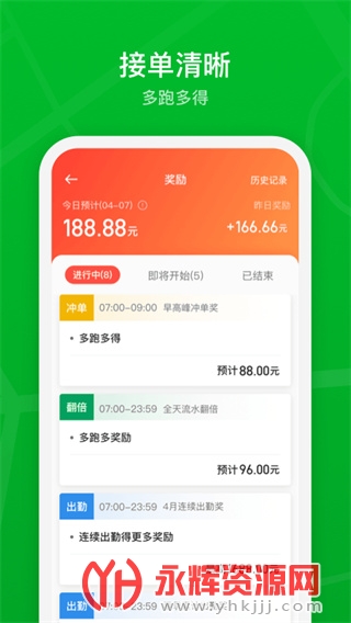 冲单奖励、高峰奖励、流水奖励……奖励活动丰富;订单统计细致、结算周期自由选择。