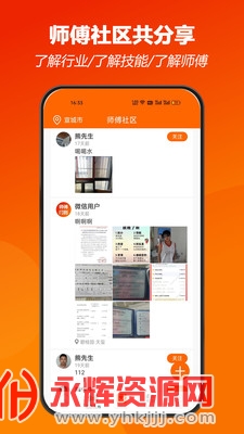 2、每一个维修师傅都将在平台当中上传自己的个人信息简介,展示自己的各种能力和经验,让大家可以清晰的了解到他们的能力进行对比。