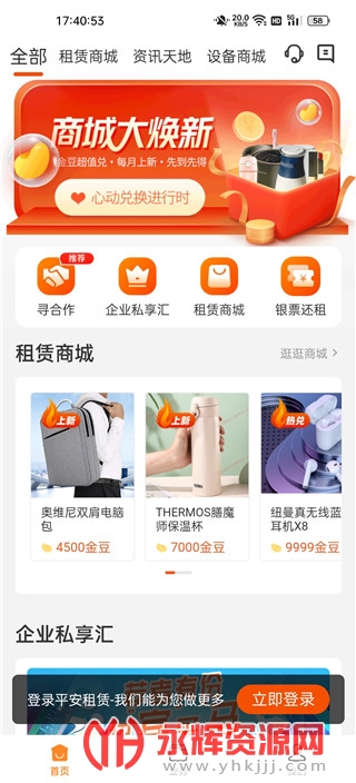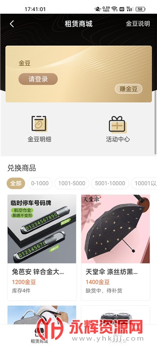 2、租赁商城可以用金豆租各种物件