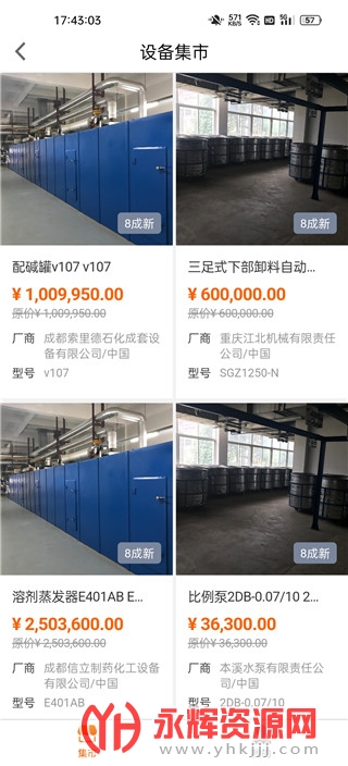 3、还可以租赁各种设备,设备都有具体的型号、厂商以及价格
