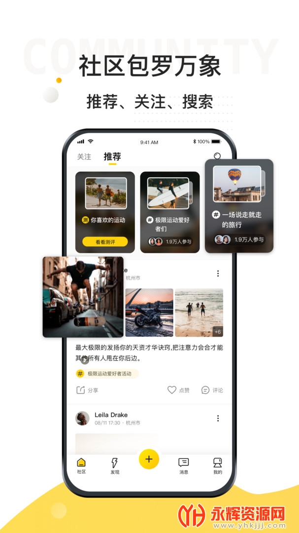 每时每刻都有好玩的人和有趣的事,在不同的运动话题之间产生相遇和碰撞。与小伙伴们一起构建一个和谐活跃的社区。
