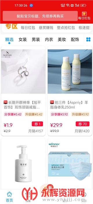 1、打开软件,里面有各种商品的优惠券,还可以搜索各种商品