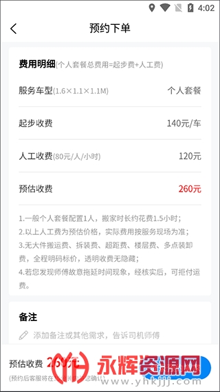 3、在预约下单页面我们还能查看详细的费用明细,最后登录即可完成预约。