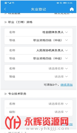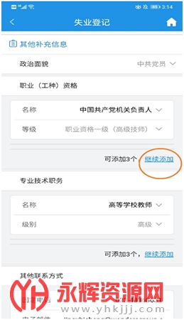 “其他补充信息”部分为非必填。根据个人需要选择相关信息完善。点击“继续添加”链接可添加并完善补充信息,最多添加3个。