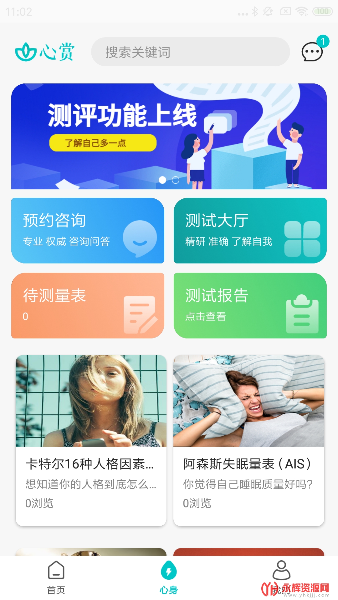 1、心赏APP是一款集心理测评和咨询预约为一体的智能心理云app。