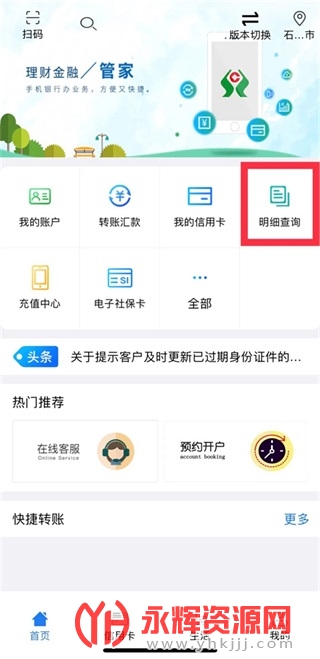 河北农信手机银行的“明细查询”可以查询绑定卡近六个月的交易明细。