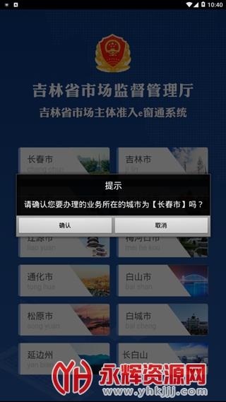 1、首先在手机里面打开吉林e窗通app,点击所属城市;