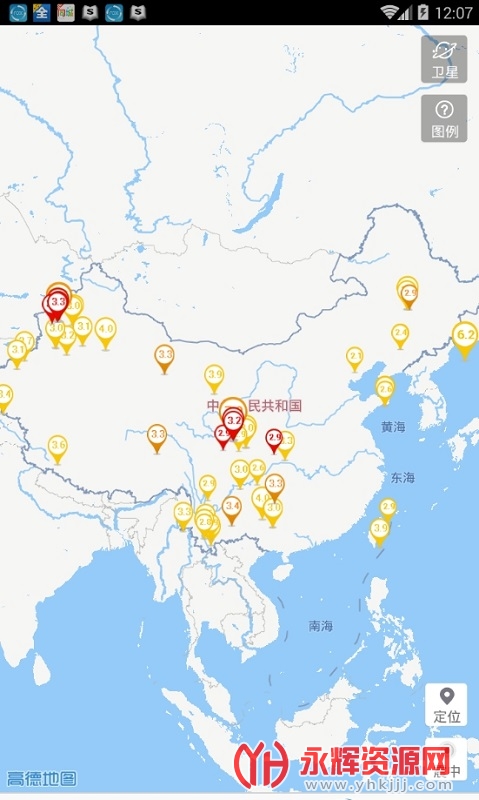 3、地震列表上的所有地震可以定位到地图上,震级大小和发震时刻通过标注符号区分;