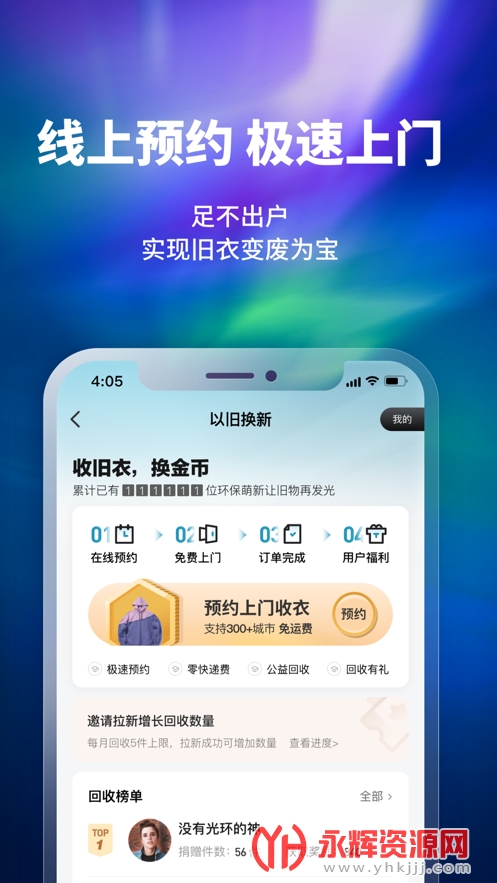 1、您可以直接在线预约。永辉资源网用户可以设定收集时间,专业人员可以在家里挑选衣服