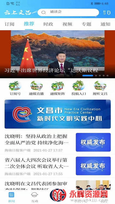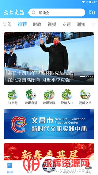 云上文昌是一款新闻资讯类软件,由文昌市融媒体中心官方推出。它提供最新的新闻资讯内容,包括身边大小事和国家时政新闻,并且细分了多个分类,如订阅、推荐、时政、视频、专题等。此外,还有特色板块,如订阅号、融媒直播、融媒矩阵、投稿入口和视听文昌等。该软件内容丰富度远超用户想象。欢迎有需要的朋友前来永辉资源网下载体验!