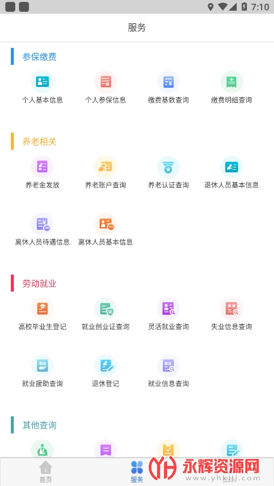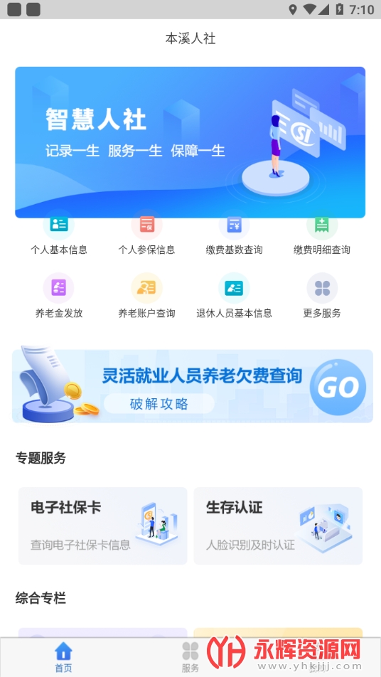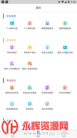 集成社保查询、社保卡业务服务、医保服务、招聘就业、生存认证等便民服务。