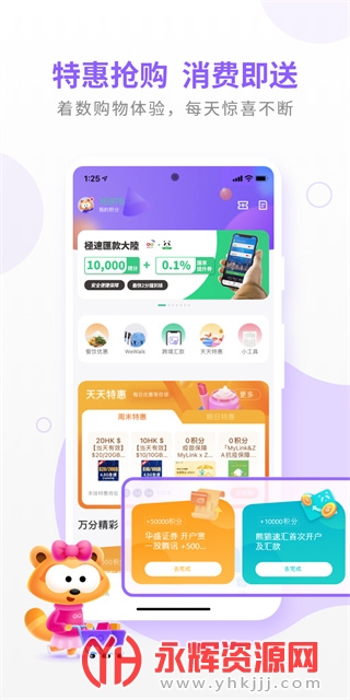 3、消费更实惠:好物页面全新改版,新增万分精彩专区及天天特惠专区,提供餐饮、酒店、旅游、打车等多种优惠!任务中心可随时随地参加各种精彩活动,赚取更多积分及奖赏。