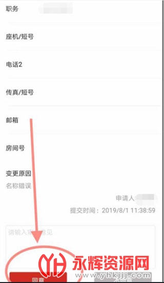 5、在通讯录信息变更页面中,管理员根据提交的信息点击同意或是不同意,即可完成审核。