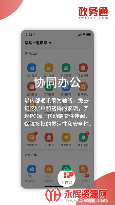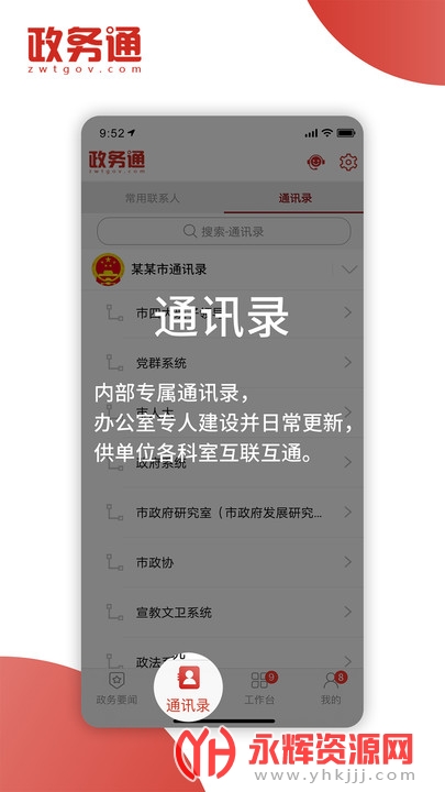 政务通app是一款党政机关内部办公专属的移动端应用软件。这款软件具有部通讯录管理和公文流转功能,可以减少时间和人力成本,提高工作效率。软件还提供会议通知、跨平台短信、用车管理、用餐管理等多种服务,并采用即插即用式架构,打造定制SaaS服务平台。政务通app的安全通讯录、会议通知等特色解决了现有纸质通讯录的不便和日常通知的繁琐性和不确定性。如果对这款软件感兴趣的话,欢迎您到永辉资源网下载体验!