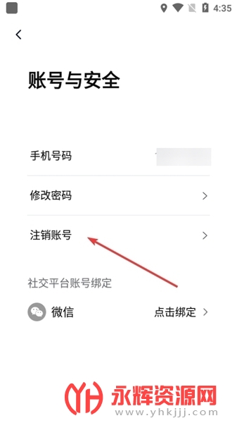 4、在账号与安全界面点击【注销账号】