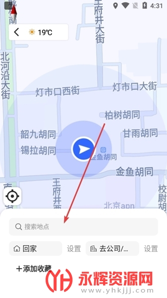 2、跳转到地图界面后点击搜索框搜索导航地点