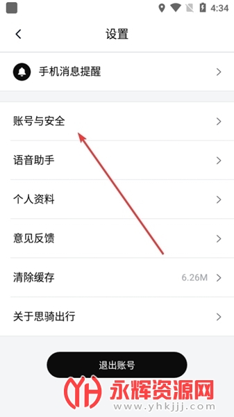 3、在设置中点击进入【账号与安全】