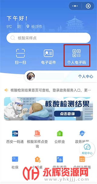 2、登录家庭成员账号后,点击个人电子码即可查看。