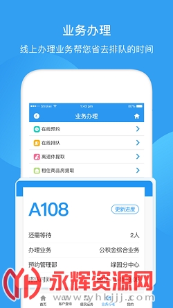 1、首先大家进入软件,在首页大家有缴存和贷款的查询,同时大家还可以在这里在线预约排队。