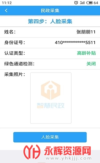 i智慧民政认证系统人像采集截图