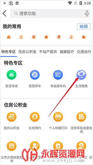 4、进入更多找到特色专区,点击下方的生活缴费进入