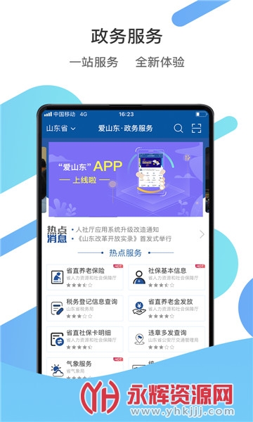 爱山东app安卓版是一款非常好用的移动端手机生活服务软件,深受山东人民的喜爱。这款软件能够为用户提供便利功能和最新资讯,并且爱山东app安卓版作为官方群众网上办事平台和政务公开平台,可以连接政府与人民,聚合全省政务服务资源,为用户提供最贴心、最便利、最快捷的生活服务。如果您喜欢这款软件的话,欢迎您来永辉资源网下载体验!