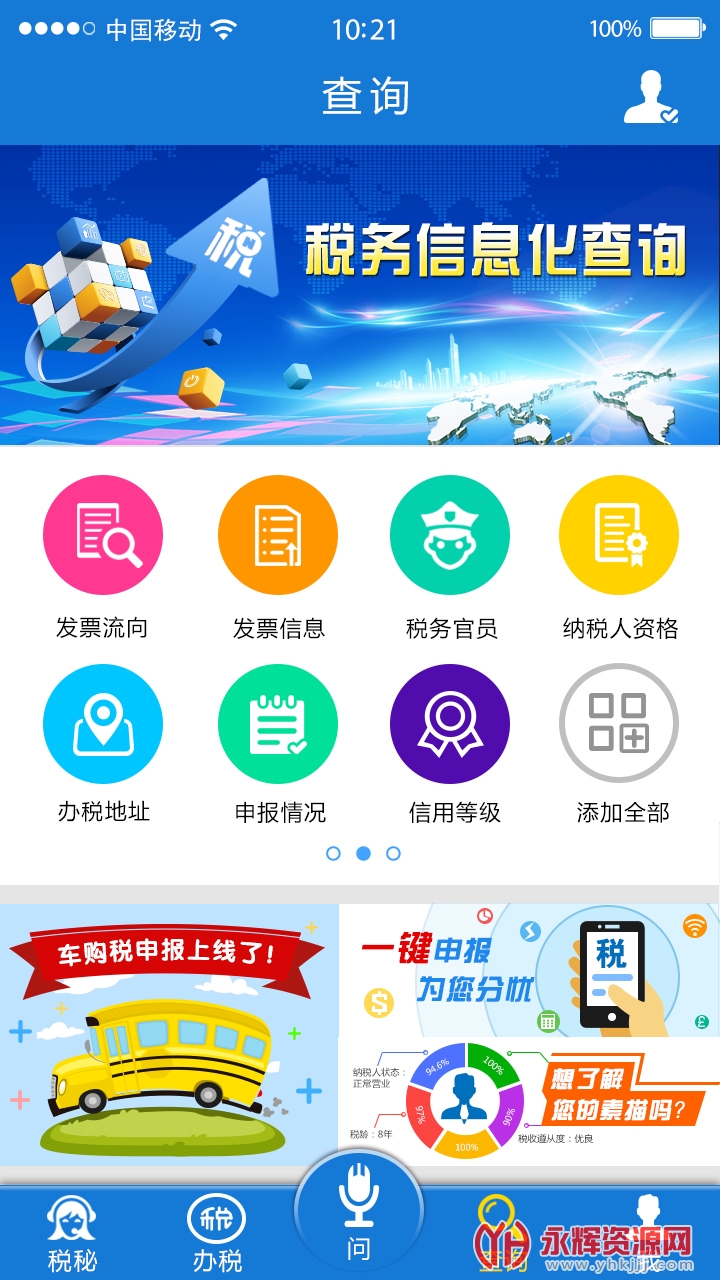 1、云南税务app是一款非常实用、贴心的税务查询办理软件。云南税务app的主要功能包括为广大用户提供便捷的税务业务查询并办理,还能通过云南税务app了解更多有关税务的资讯!