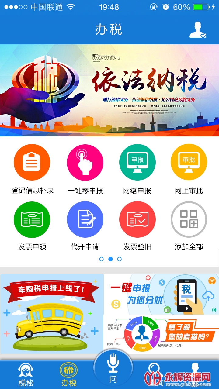 2、云南税务app是一款由云南国家税务局推出的手机app。云南税务app给用户带来全新体验,实现用户时时掌上办税,有效解决税收征管工作中的难点、痛点问题。为进一步深入推进电子税务局建设,不断优化现有功能,扩展新功能,满足用户和税务工作人员更广、更深层次的需求。
