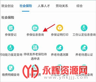 4、进入办事,找到社会保险,点击下方的参保信息查询进入。