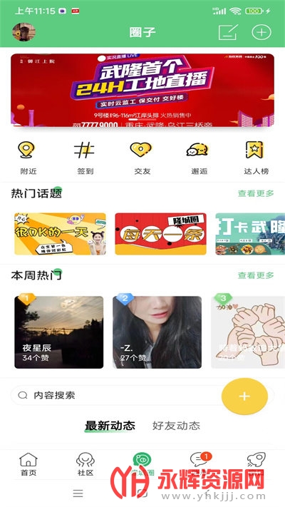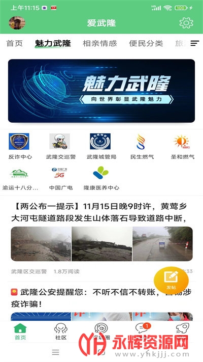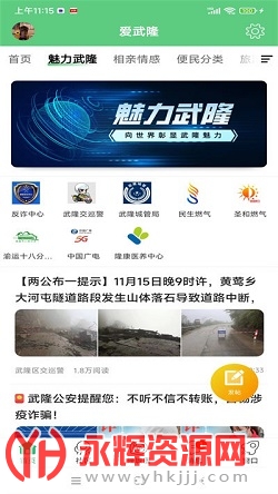 爱武隆app安卓版是一款专为武隆市民打造的移动端综合资讯和交流社区平台软件。这款软件集吃、喝、玩、乐于一体,提供及时全面的生活服务信息。用户可以关注自己喜欢的内容,发布帖子结交同城好友。如果您对这款软件感兴趣的话,欢迎您来永辉资源网下载体验!