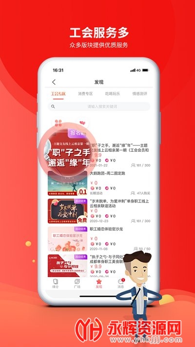 活动参与:该应用程序提供了许多特色活动,如文艺演出、体育比赛、读书会等,让用户可以更加融入职工群体。