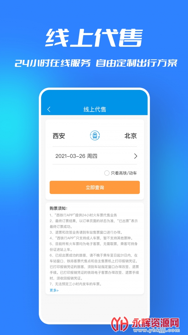 西铁行app安卓版是一款由中国铁路西安局集团有限公司官方出品的移动端手机应用软件。这款软件能够为用户提供7*24小时线上订票、席位车次自由选择、无上限添加常用联系人等功能,为旅客们的出行需求提供便利。同时还能够更好地满足旅游和商务出行的需要,并且操作简单,提高出行品质。此外还有行李代运的功能,可以查询行李去向。如果您需要这款软件就快来永辉资源网下载体验吧!