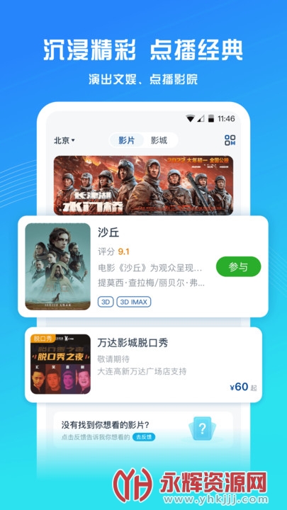 电影购票:该软件可以直接在手机上购买影片的门票,无需排队等候,让用户更加便捷、快速地购票。